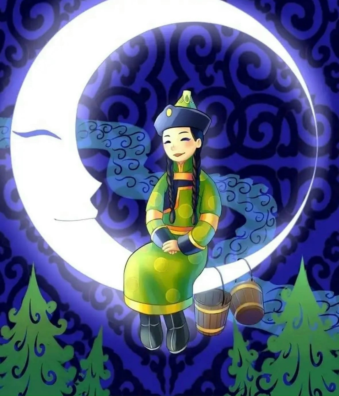 Бир катап уруг он бештиң айы үнүп келгенде, идиин кеткеш, Айга ужуп чеде берген. Амы-тыным камгалаан кызым дээш Ай ону кончуг-даа хүндүлеп турган чүве эвеспе.