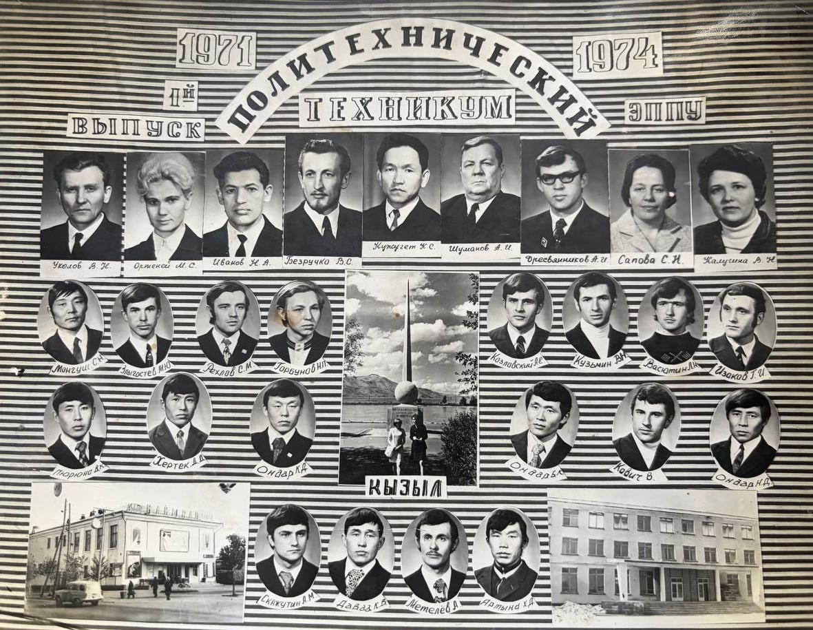1971 чылдың Совет шериг албанындан халажып келгеш, Кызыл хоорайда политехниктиг техникумнуң чаа ажыттынып турган бүдүрүлге албан черлериниң электри дериг-херексели болгаш эптеп кылырының талазы-биле салбырга шылгалда эрткеш, кирип алдым. Ынчан бир дугаар техник-электриктер бөлүүнге 24 кижи хүлээп алган чүве. Ийи чыл алды ай дургузунда өөренгеш, түңнелинде 18 кижи доозуп, Тыва АССР-ниң баштайгы профессионал электрик эртемниг кижилери болдувус. Бистиң башкыларывыс: техникумнуң директору, Тываның баштайгы геолог-эртемдени, геология-минералогия эртемнериниң кандидады Калин-оол Серээевич Күжүгет, өөредилге талазы-биле оралакчызы, алдарлыг башкы Мария Кочнева, бөлүктүң куратору Александр Иванович Дресвянников, электри дериг-херекселиниң теоретиктиг өөредилге башкызы Виктор Степанович Безручко, электропривод база электромонтаж башкызы Мария Степановна Өртеней — инженерлиг графика башкызы, Николай Анатольевич Иванов — электрилиг машиналар башкызы бисти өөредип турган. Олар эрткен вектиң 70 чылдарында дыка шыырак эртем-билиглиг башкылары кылдыр санадып турган.