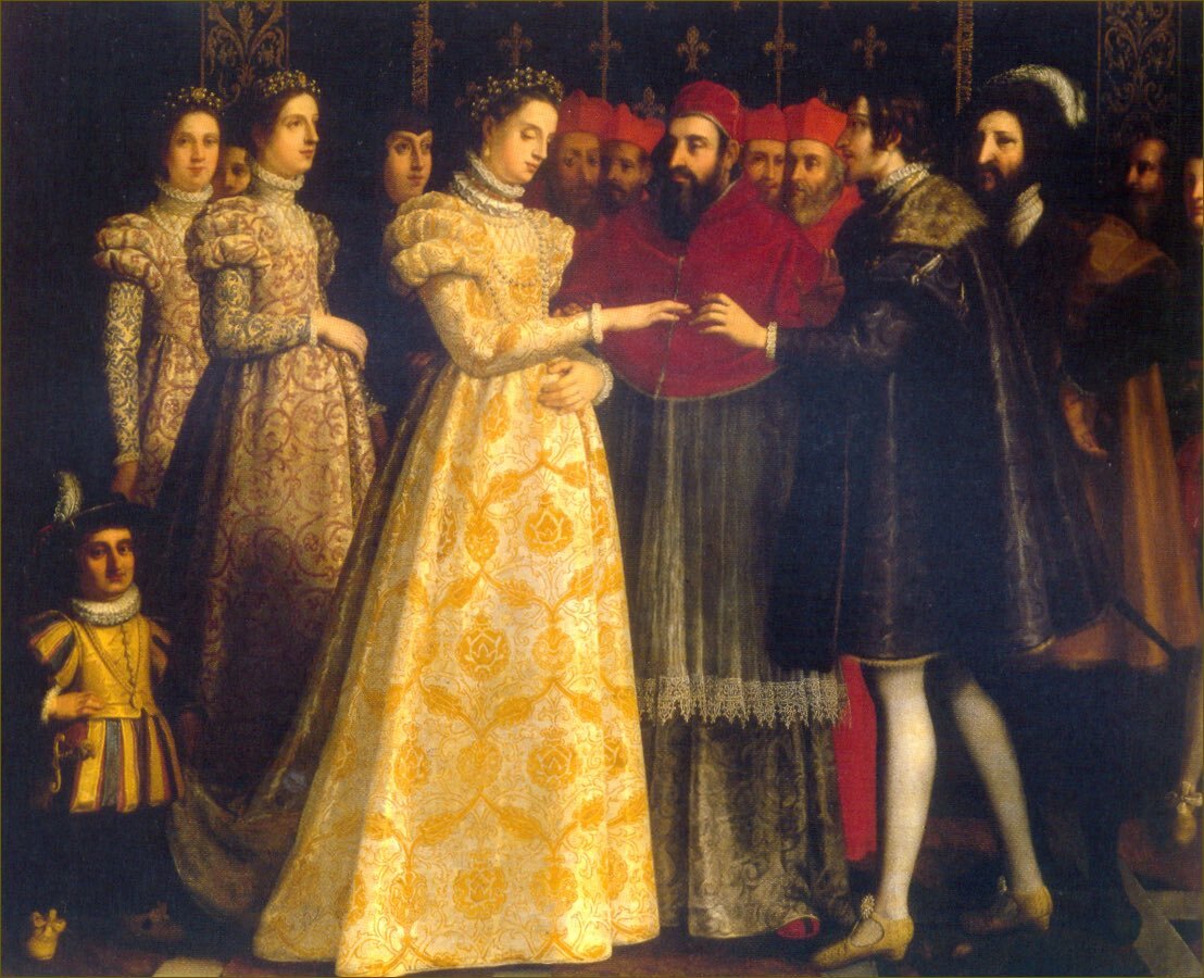Ёзулуг херээжен улуска таарыштыр кылган бедик каблуктуг туфельдер 1533 чылдың октябрь 28-те тывылган деп мода төөгүчүлери бадыткап турар. Ол хүн Францияның келир үеде хааны болур Генрих II биле бай уктуг итали аймактан Екатерина Медичи деп уругнуң бадыланышкан хүнү болган. Ынчан чаа-ла 14 харлыг Екатерина чолдак дурт-сынын (150 см) улуска көргүспес дээш, Флоренцияның эң-не сураглыг идик кылыр мастеринге бедик каблуктуг идиктер кылып бээрин дилээн. Мастер аңаа элээн каш эжеш бедик каблуктуг туфельдерни тускай чагыг ёзугаар кылып берген.