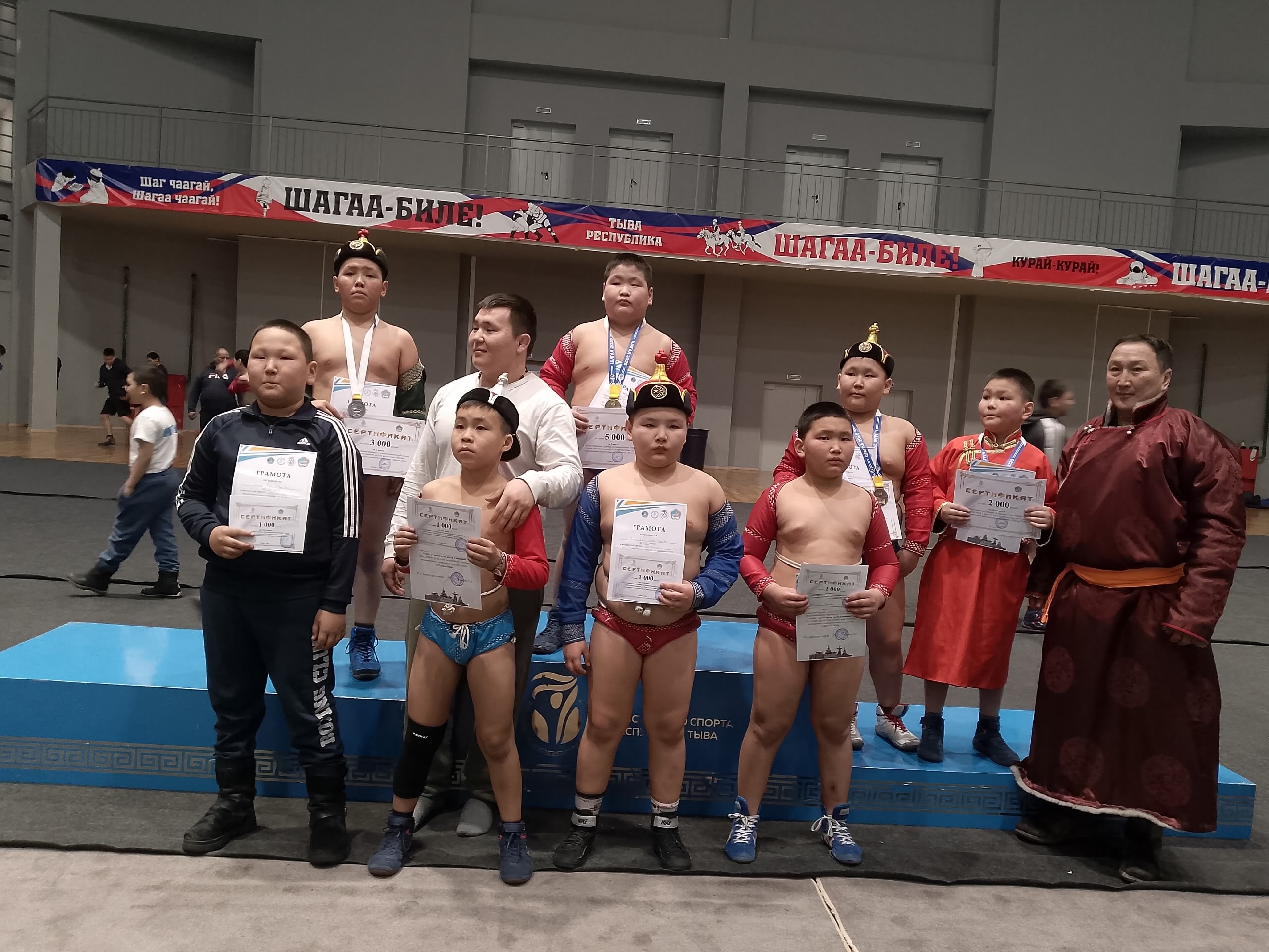 Түңнелинде шаңналдыг черлерже дараазында мөгелер кирген: чараш дидим хүрешти Барыын-Хемчиктиң Олимпийжи курлавырлар спорт школазындан Шагаамай Күжүгет (44 кг) база Санчай Ооржак (62 кг) көргүскеш, 3-кү черни чаалап алганнар. 100 килдиг мөгелер аразынга Шойгу Сарыглар 3 дугаар чер дээш ойнаткаш, 5-ки черже кирген. Мөгелер база оларның тренерлери Эчис Монгуш биле Томур Ооржак Россия командазының кежигүнү деп хүндүлүг атка төлептиг болганнар.
