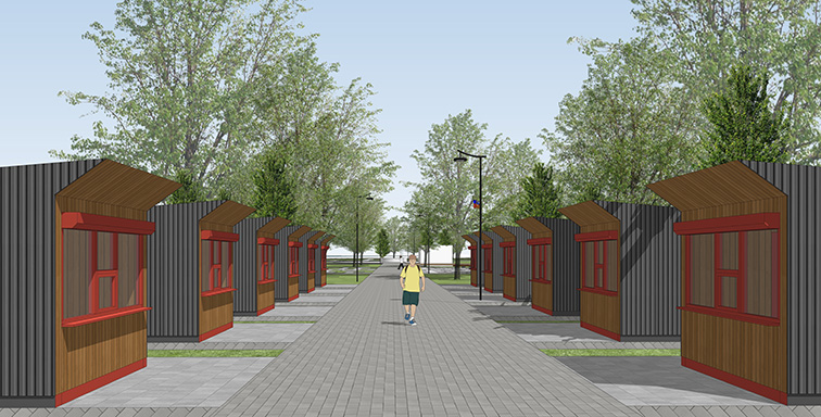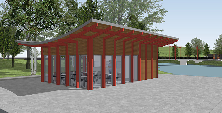 Өгнүң турар черин тыва чоннуң чурттап чораан оран-савазын кара хевээр көргүзүп каан. Ол бүгү объектиниң дизайнындан болгаш шывыгларындан көскү. Төп шөлчүгеш таптыг-ла культурлуг хемчеглер эрттирер чер болуп турар. Ында делгелге кылыр ширээлер, фудкорт деп чемненир шөлчүгеш, кофейня база дыштаныр чер бар. Шөлчүгештиң ортузунда аянныг болгаш эптиг байдалды тургузуп турар одаг болгаш долгандыр сандайларны салган. Тываның тугу-биле киискип турар “Белдир” деп хемелер доктаар чер тыва чоннуң чаңгыс деминиң демдээ болур. Ында келген кижилерге дыштанып олурарынга эптиг болзун дээш, сандайларны база салган.