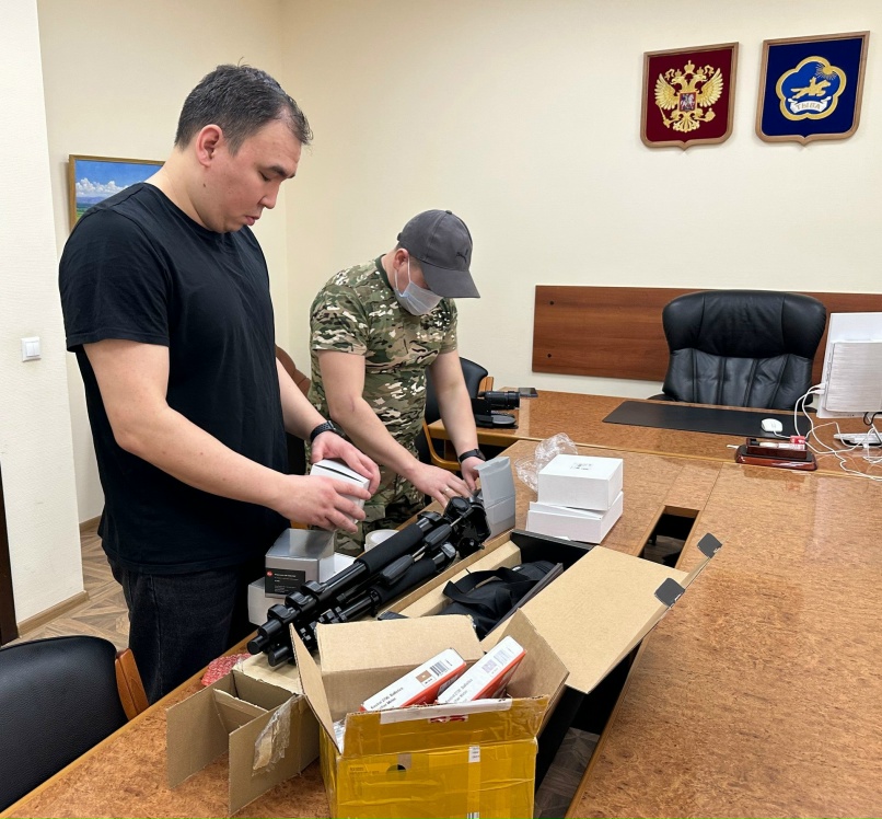 Тускай шериг операциязының киржикчилерин болгаш оларның өг-бүлелерин деткиир талазы-биле Чаңгыс аай штаб 55-ки гвардейжи мото-адыгжы (даг) бригаданың дайынчыларының чагыы-биле чыгган техниктиг дериг-херекселдерни шериг кезээниң адыгжы ротазының снайперлер бөлүүнүң командиринге дамчыдып берген. Сес дериг-херекселдиң аразында лазерлиг туран, радиостанция дээш өске-даа техниктиг чепсек-херексел бар. Оларны снайперлерниң командиринге дамчыдып бээри Тыва Республиканың Москвада төлээ черинге болган.