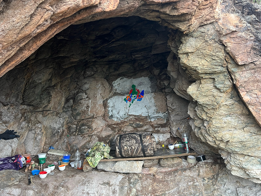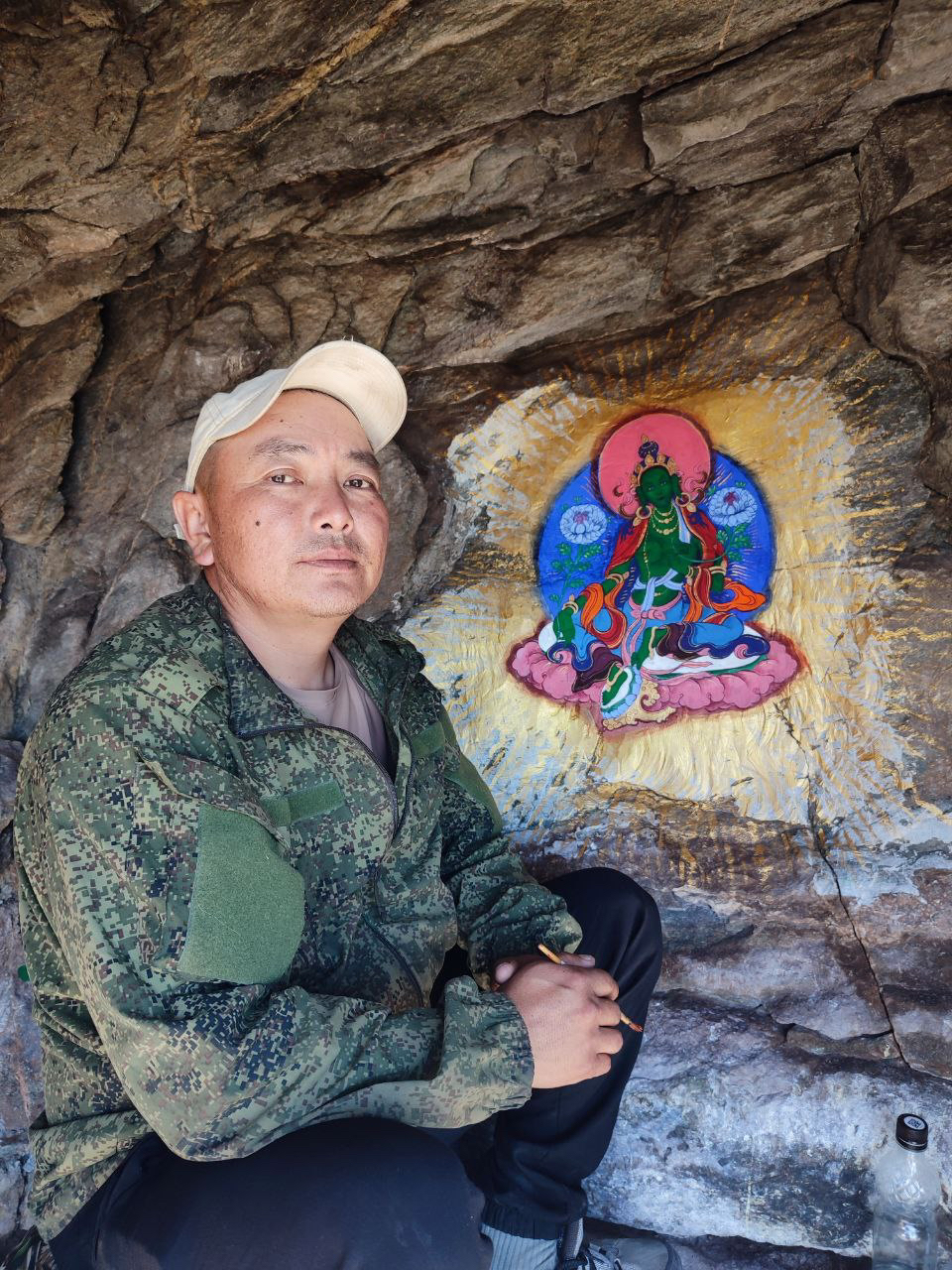 Ол херээжен кижи Бай-Тайганың чонга база бир таныттынгыр кижизи Артцалам Хертекке чугаалаан. Ол кижи меңээ чугаалааш, ол бурганны чуруп көрем дээн. Бурунгу чылын ол ажылды кылып эгелээр деп планнап белеткенгеш, эрткен күзүн ол куйга бурган чуруун чуруп доостувус. Ажылды эгелээрде, баштай куйда хаяны дескилеп белеткеп алыр болгай дээш чеде бээривиске, чуруур ужурлуг бурганывыстың дүрзүзүнге дүүштүр белеткеп каан чүве дег, кончуг дески чер бар болган. Черле аңаа турар ужурлуг турган-дыр деп эскерген ийик бис.