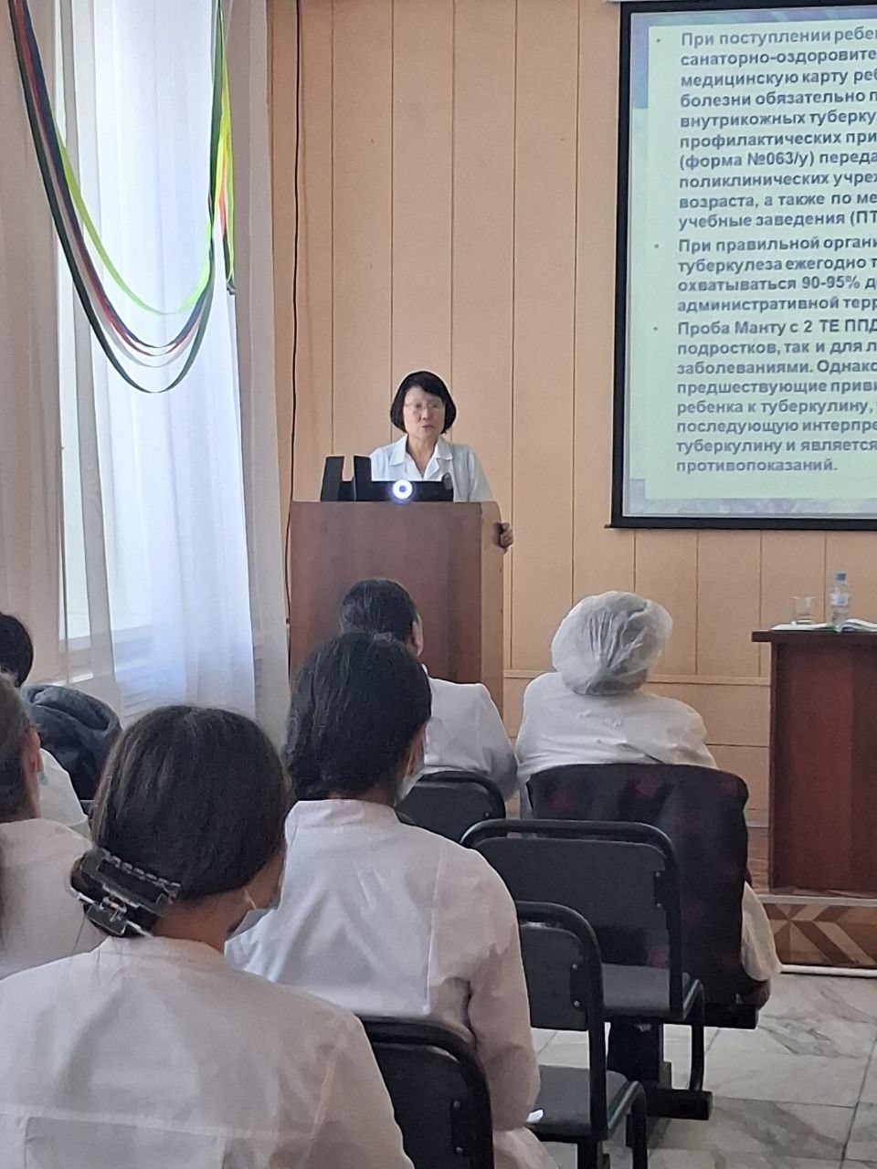 Республиканың туберкулёзка удур диспансериниң баазазында республиканың кожуун-суму эмнелгелериниң эмчи ажылдакчыларынга туберкулинодиагностика эрттиреринге өөредилге курстарын эрттирип турар. Чылда 2 катап эртип турар өөредилгени туберкулёзка удур диспансерниң уругларның диспансер салбырының фтизиатр эмчизи Орланмаа Донгак эрттирип турар.