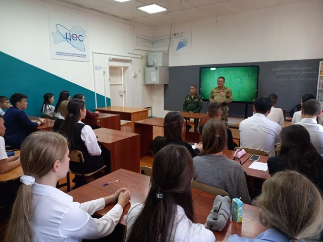 Ол бүгүнүң канчаар болуп турарын Тываның найысылалы Кызыл хоорайның 7 дугаар школазының 8-10 класстарының өөреникчилеринге Тыва Республиканың шериг комиссариадының ажылдакчылары, тускай шериг операциязының дорт киржикчилери, хүндүлүг дыштанылгада подполковник Альберт Ховалыг база волонтёр Сайгын Бюрбю чугаалаан.
