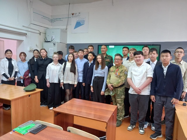 РОССИЯНЫҢ ДАЙЫНЧЫ АЛДАР ХҮННЕРИНИҢ МУРНУНДА КЫЗЫЛДЫҢ 7 ДУГААР ШКОЛАЗЫНЫҢ ӨӨРЕНИКЧИЛЕРИ-БИЛЕ ШЕРИГ КОМИССАРИАДЫНЫҢ АЖЫЛДАКЧЫЛАРЫ УЖУРАШКАН.