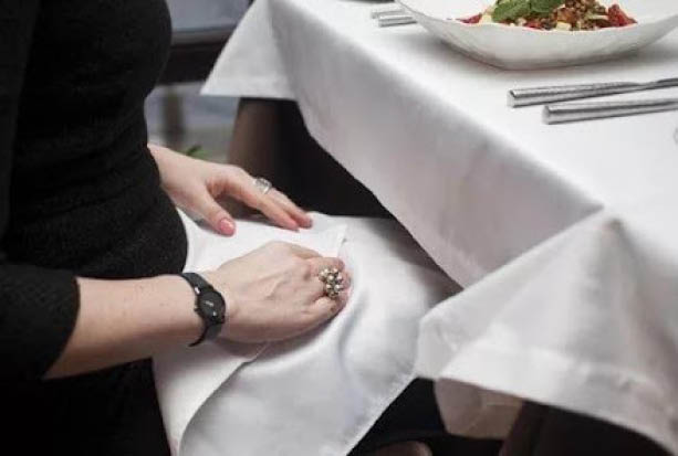 Пөс салфетканы чемненир мурнунда дөңмээнге салып алыр. Чоруурда, ону дүргеш, тавактың иштинге эвес, а кыдыынга салып каар. Бир эвес бичии када турар апарган болза, салфетказын тавактың оң талазынга салып каар. Келгеш, улаштыр ажыглаар.