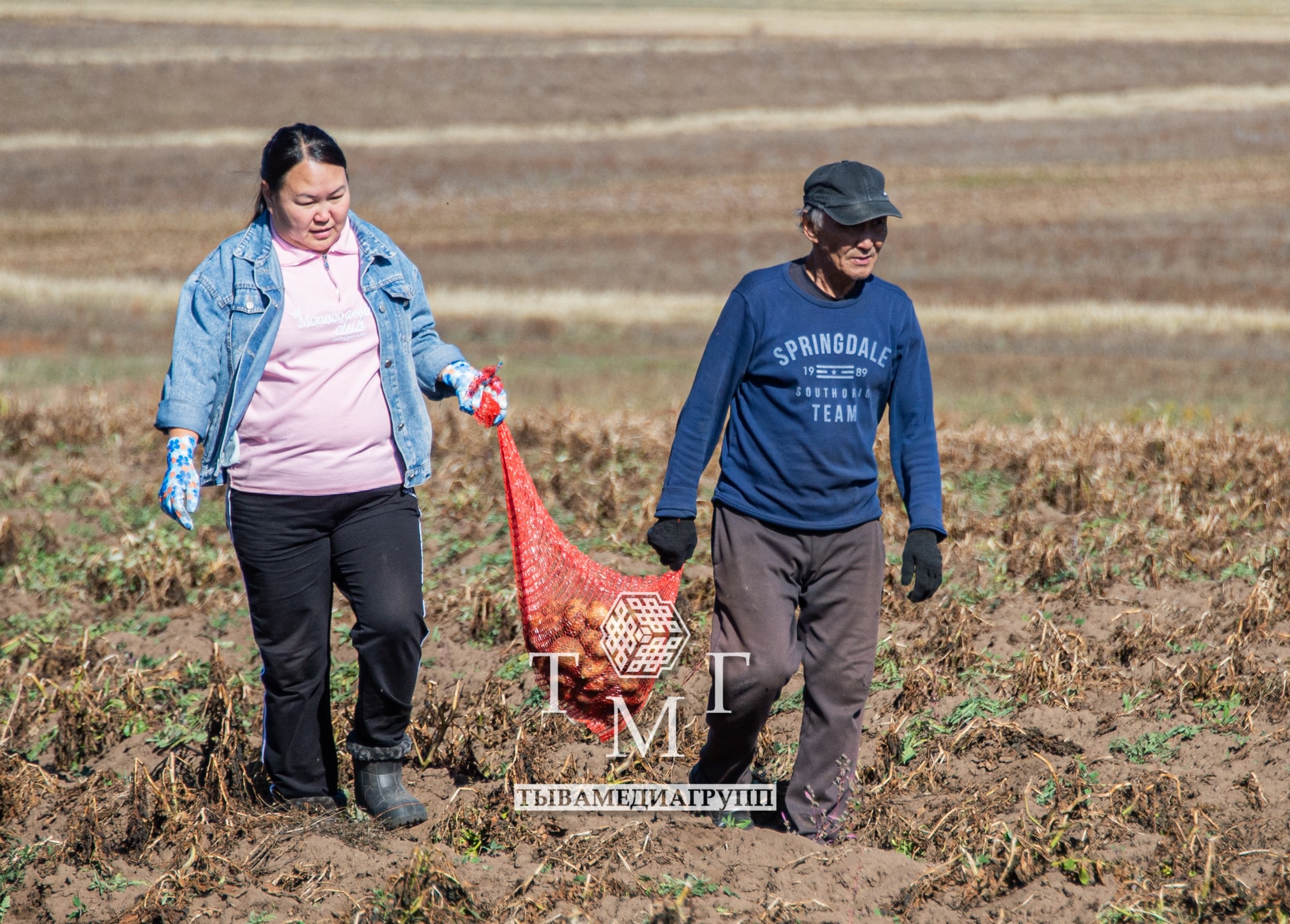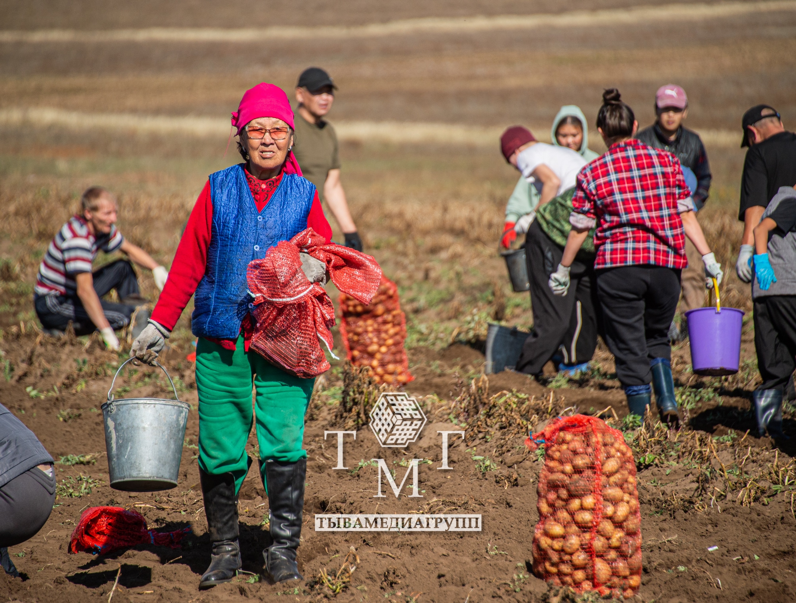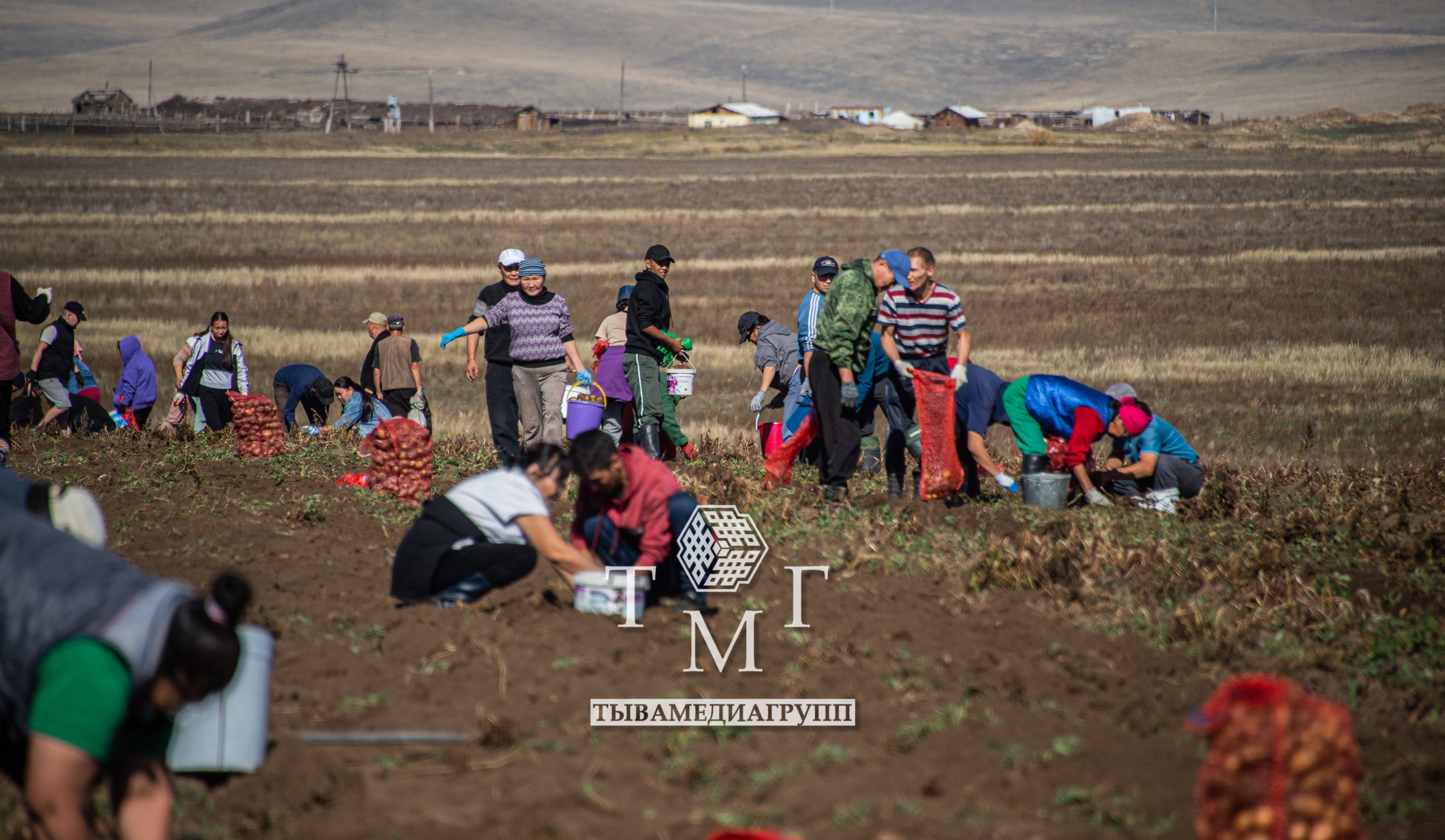 «Өг-бүле шыгжамыры» губернатор төлевилелиниң киржикчилери боттарының дүжүдүн ажаап келгеннер. Шөлде 300 хире кижи ажылдап турар. Картофель казар тускай трактор шөлдү дургаар аңдарарга, кижилер чүгле чыып, шоодайлап четтигип турар болду. Ынчангаш ажыл дыка дүрген, демниг чоруп турарын эскердивис.