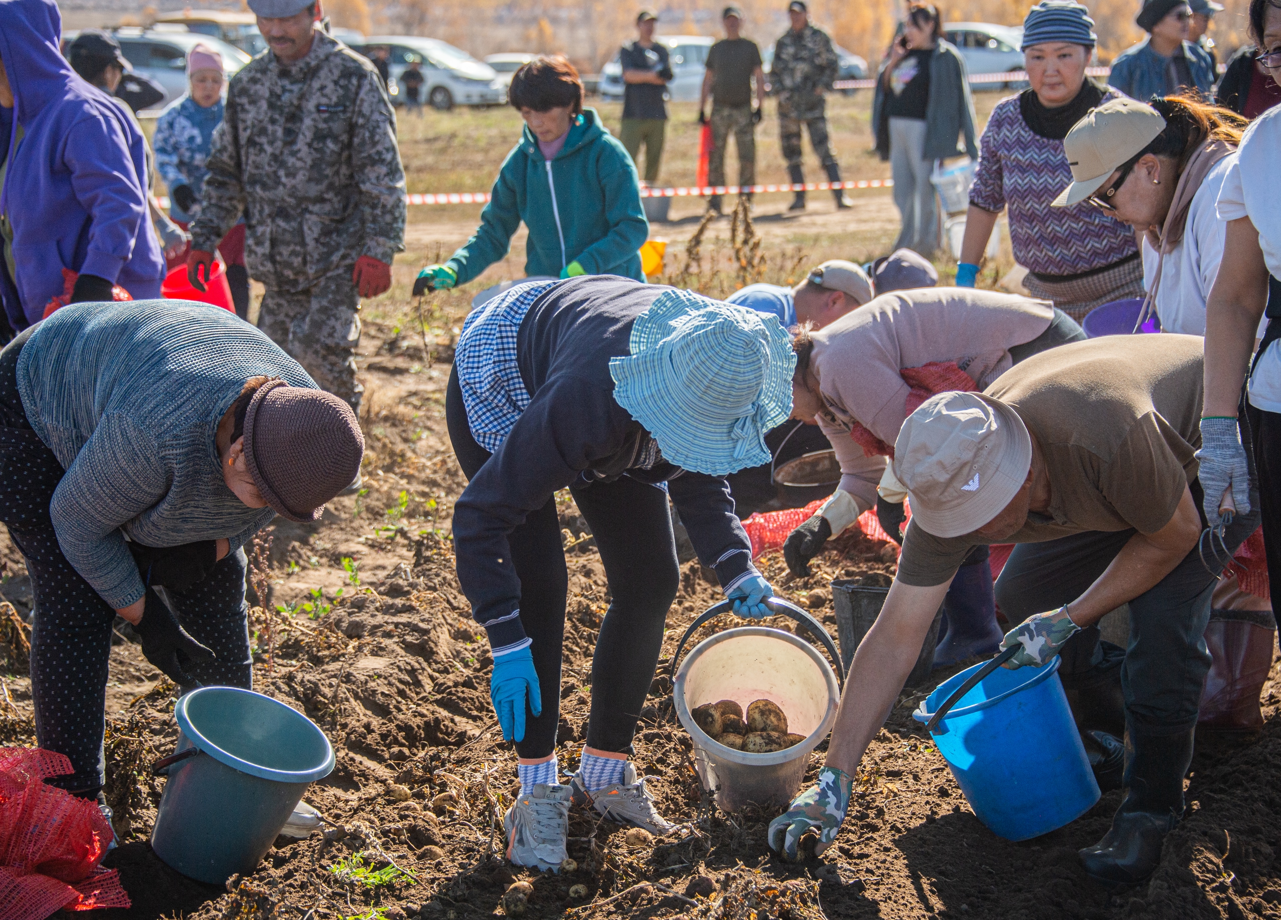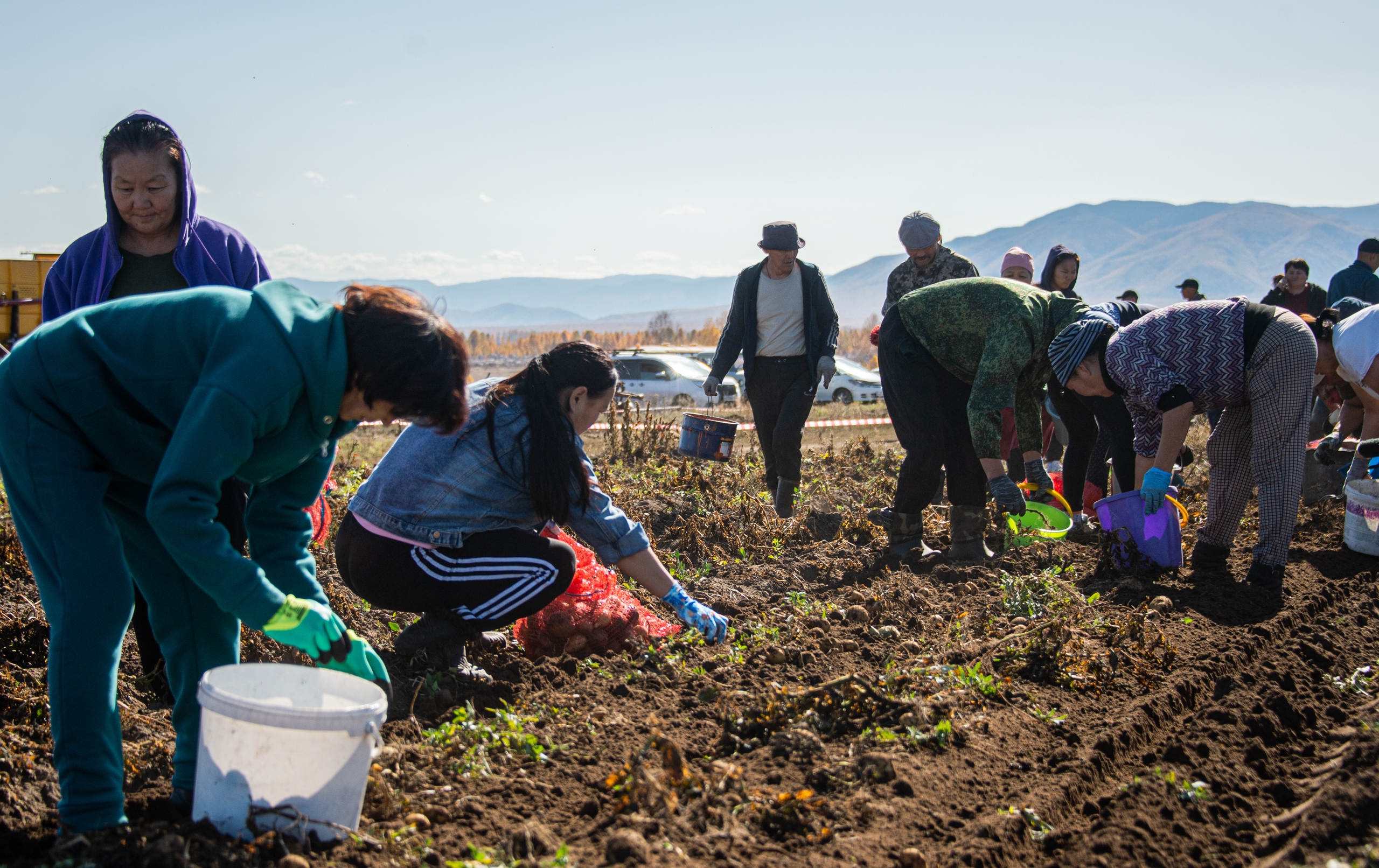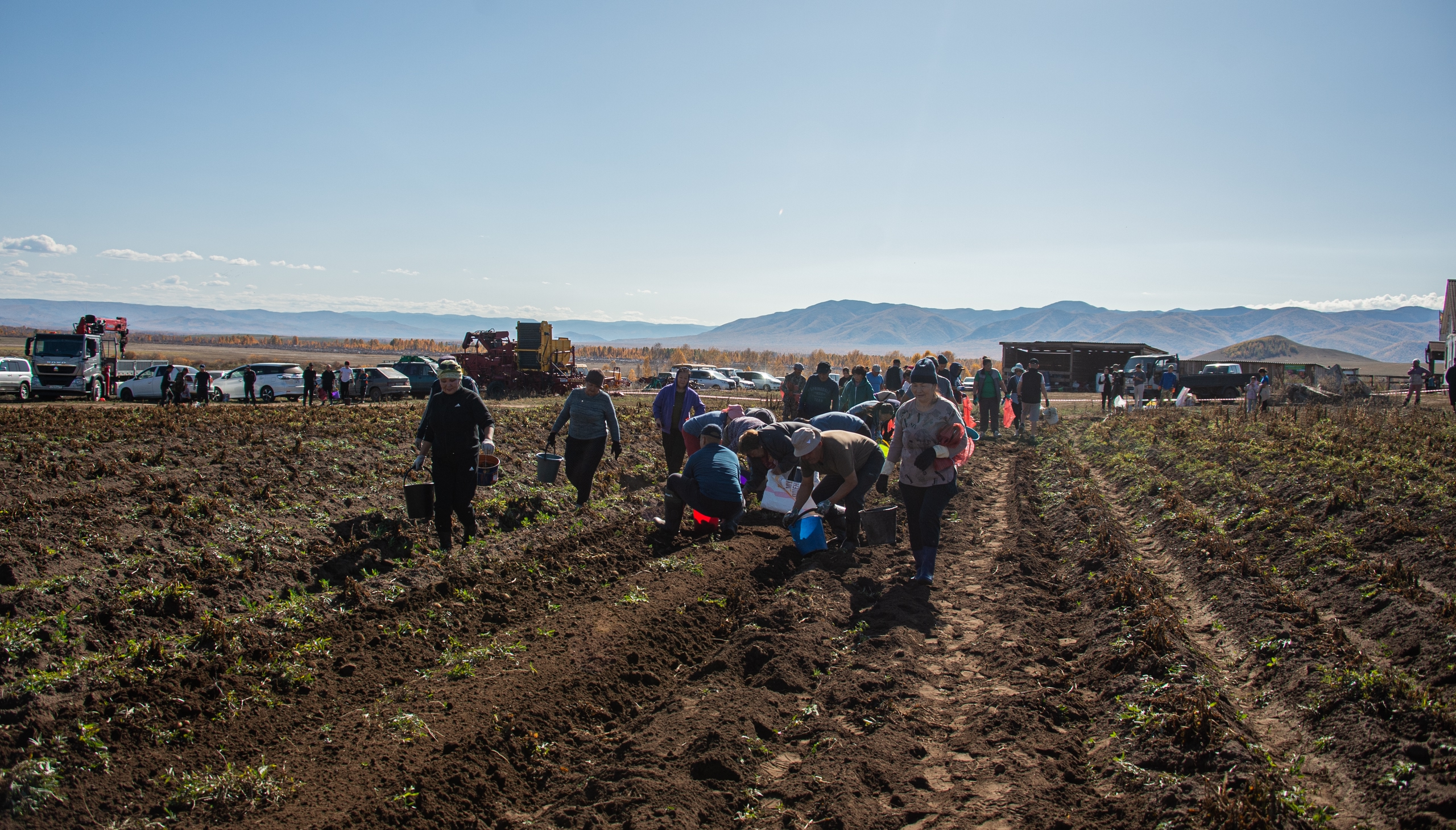 Эрткен дыштаныр хүннерде Балгазын суурдан каш километр ырак черде хөй-ле чон, машина-балгат чыылган, ыры-хөгжүм куттулган байырланчыы-даа кедергей болган. Ол дээрге “Идегелдиң шөлү” көдээ ажыл-агый бүдүрүлге кооперативиниң картофель шөлдеринде дүжүт ажаалдазының чоруп турары-дыр. «Өг-бүле шыгжамыры» губернатор төлевилелиниң киржикчилери боттарының дүжүдүн ажаап келгеннери ол. Шөлде 300 хире кижи ажылдап турар болду. Картофель казар тускай трактор шөлдү дургаар аңдарарга, кижилер чүгле чыып, шоодайлап четтигип турар. Ынчангаш ажыл дыка дүрген, демниг чоруп турарын эскердивис.
