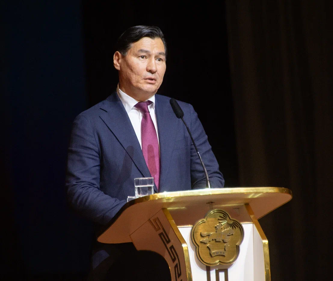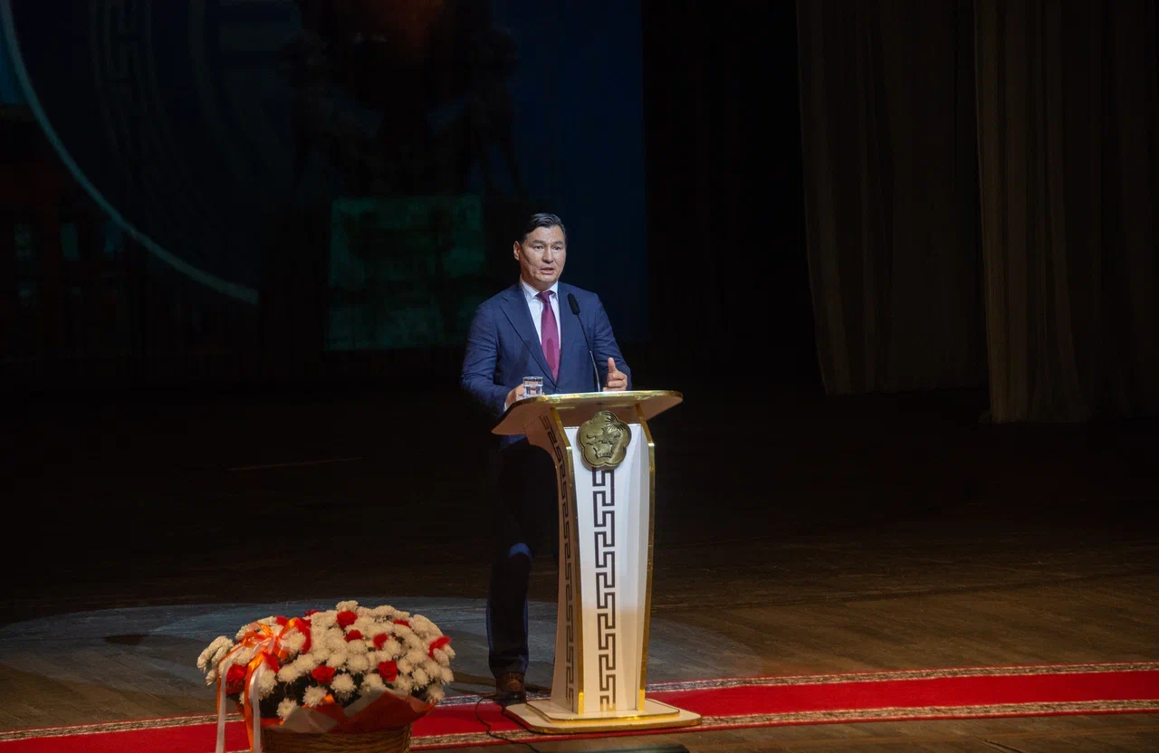 Тываның Виктор Көк-оол аттыг национал хөгжүм-шии театрының сценазынга тыва дылга номналды Калмык Республиканың баштыңы Бату Хасиков улуг сонуургал-биле дыңнаанын, тыва чоннуң төрээн дылын кадагалап, сайзырадып чоруурун магадаан. Чоокта чаа Калмыкияга делегей чергелиг III буддийжи шуулганны эрттиргенин, келир чылын IV шуулганны Тывага эрттирер кылдыр Владислав Ховалыгга дамчыдып бергенин чон мурнунга чарлааш, хемчегни эрттиреринге дузалажып, бүгү талалыг деткиирин аазаан.