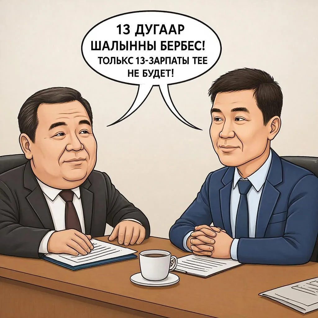 – Харын-даа чугаалап бердиңер, ам дораан бухгалтерияга дагзып каар мен шүве: силерге 13 дугаар шалың төлевес кылдыр...