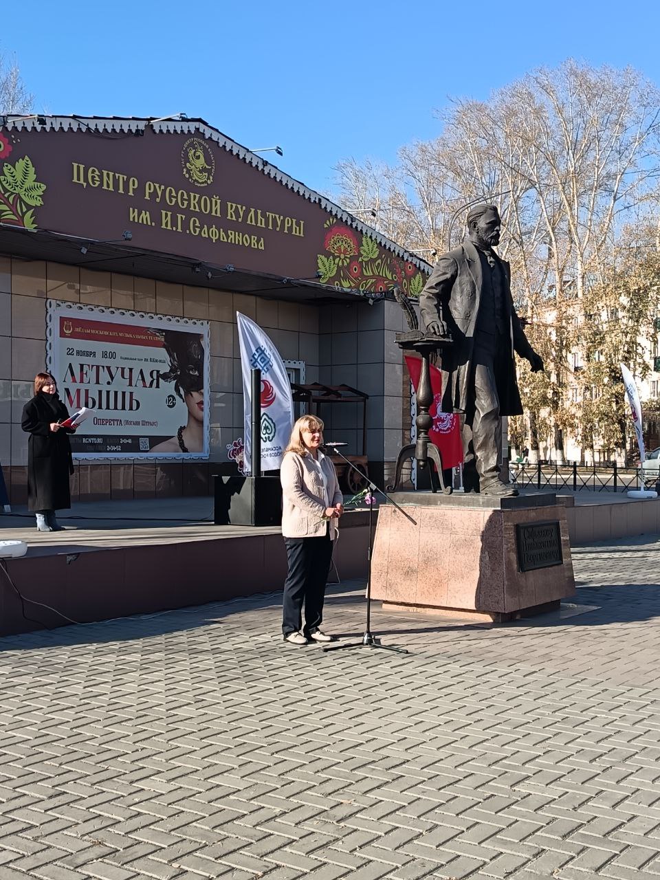 Диктант бижиириниң мурнунда, “Чурттап чор мен. Ынак мен. Чоргаарланыр мен” деп улуг шуулганның боттандырылгазының III чадазын түңнээри-биле ооң организакчыла- ры – Федералдыг националдар херектериниң талазы-биле ТР-де агентилелдиң, Россияның чоннарының Ассамблеязы болгаш И.Г. Сафьянов аттыг орус культура төвүнүң ажылдакчылары Тываның сайзыралынга улуг рольду ойнаан хөй-ниитижи, эртемден Иннокентий Сафьяновтуң тураскаалынга чечектер салыр ёзулалдан эгелээн.