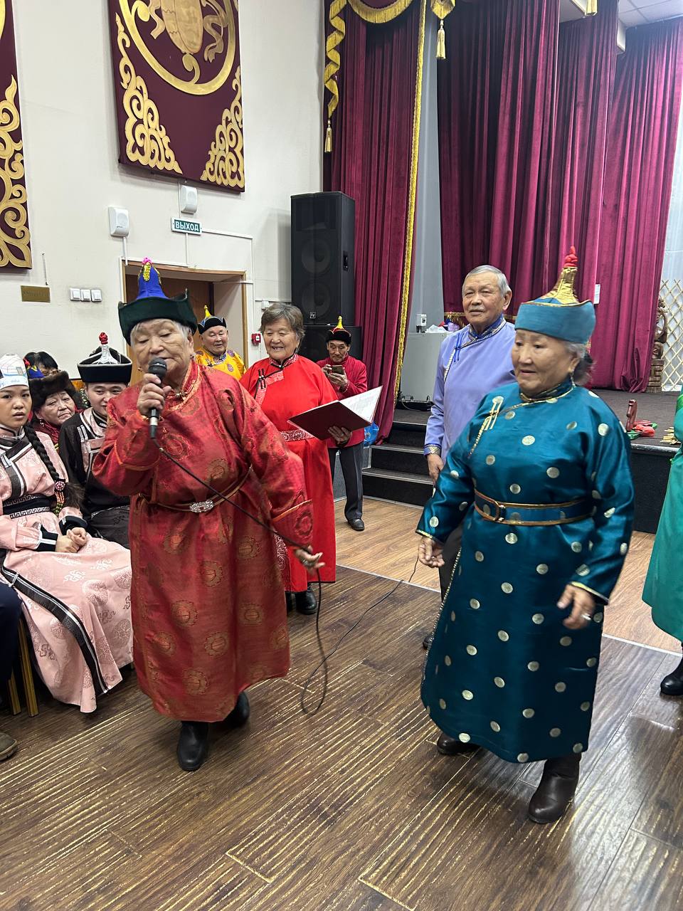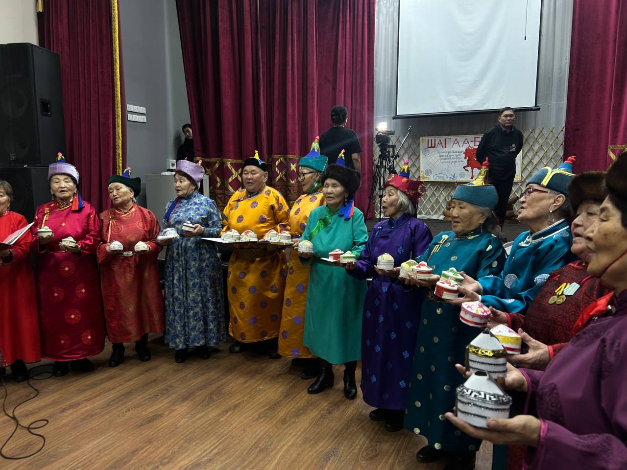 Кызыл хоорайның Хоочуннар чөвүлелиниң даргазы Ольга Кыргысовна хүндүлүг аалчыларын, аалдың ажы-төлүн олуттарже чалааш, байырлалды эгелээн. Сценада «Мөңгүн үем — мээң чоргааралым» деп ансамбль холдарында ак кадактарын туткаш, торгу тоннарлыг, дордум курлуг, эр кижилер курларында мөңгүн оттук-бижээн астып алган, алдарлыг композиторувус Данзын Кертик-оолдуң үделгези-биле «Увай-Увай» деп ырлавышаан, чолукшулга ёзулалын, саң салырын «аалдарның» ажы-төлүнге тайылбырлап көргүскени онзагай. Ону көргеш, кижиниң национал чоргааралы көдүрлүр.