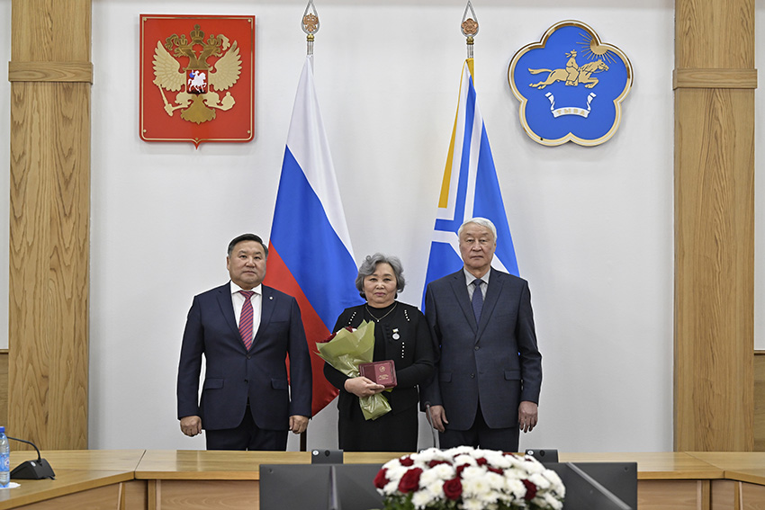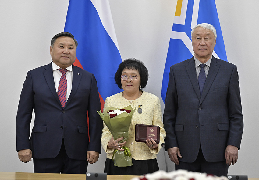 “ӨГ-БҮЛЕНИҢ ҮНЕЛИГ ЧҮҮЛДЕРИН КАДАГАЛААНЫ ДЭЭШ” ТЫВА РЕСПУБЛИКАНЫҢ МЕДАЛЫ-биле улус өөредилгезиниң хоочуннары Алдын-оол Сендинович Сундуй биле Долум Даңзы-Белековна Сундуй;