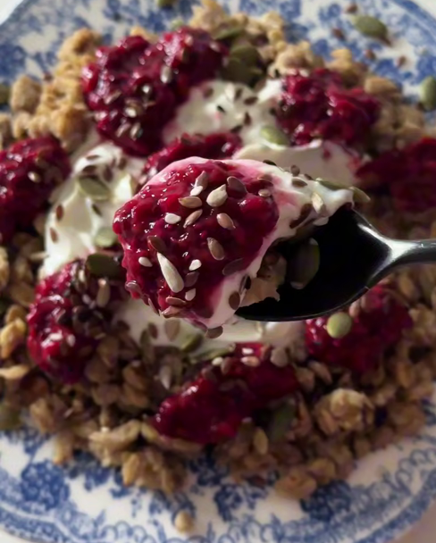 Чалбак шаажаң тавакка 1 бананны серээ-биле чуура иткилепкеш, оңгар шил тавакче салгаш, кырынче бир чиг чуурганы, 40 грамм сула крупазын (овсянканы) холуй былгапкаш, микроволновкаже 2 хире минута иштинде супкаш, кырынче 100 грамм малинаны, шопулак ишти чиа үрезинин болгаш өске-даа тоорук аймаан холупкаш, 120 грамм грек йогурт-биле былгап алыр. Бо чиик чемде кирип турар хром деп химиктиг бүдүмел кижиниң чигирзиг чем чиксээрин чавырылдырар.