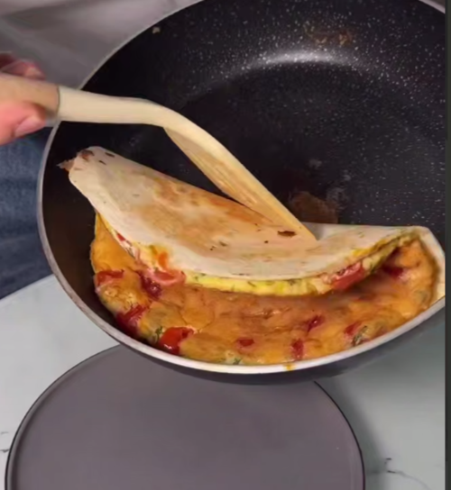 Оңгар саваже 3 чиг чуурганы куткаш, ооң кырынче 5-6 черрини, ногаан боондакты доорааш, бичеледир хээп азы дүрбүп каан быштакты ургаш, дус, перецти салыпкаш, холуштур былгаар. Изидип каан сковородага хөй эвес олива үзүн куткаш, холуксааны быжырар. Болуп чорда, ооң кырынче тортилья азы чиңге лавашты дуглай салыпкаш, бир талазын кырынче сыга идипкеш, тавакче эзип алыр. Артык килдер октап, арып алыр күзелдиг улуска тодуг чем болур.