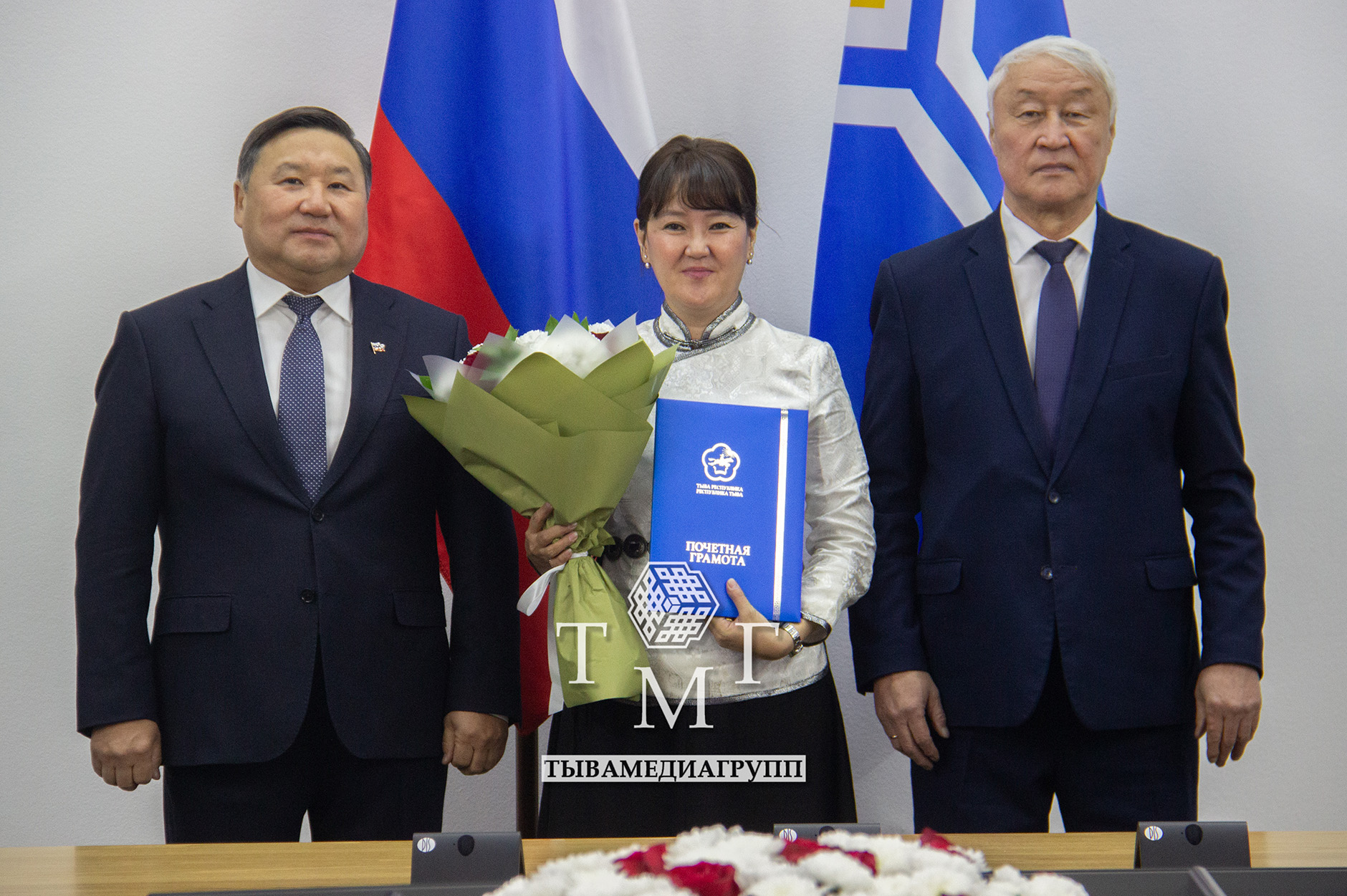 Массалыг информация чепсектерин сайзырадырынга киирген үлүү болгаш хөй чылдарда ак сеткилдиг ажылы дээш “Тыва Республиканың алдарлыг ажылдакчызы” атты Тыва Республиканың “Тывамедиабөлүк” парлалга бажыңы” күрүнениң автономнуг албан чериниң фото, дизайн болгаш корректура килдизиниң орус дыл талазы-биле улуг корректору Надежда Петровна Германга, Тываның Юрий Кюнзегеш аттыг ном үндүрер чериниң хоочуну Валентина Шагдыровна Чамьянга тывыскан.