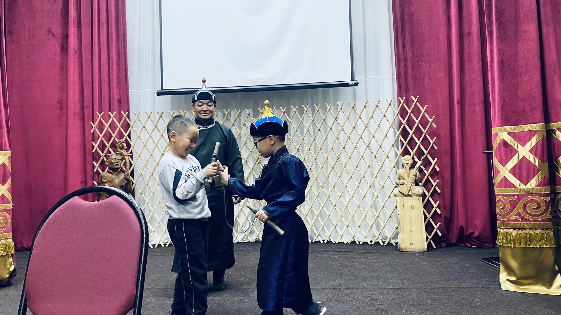 Аът шалбадаары, кажыктаары дээш янзы-бүрү тыва оюннарны уруглар сонуургап ойнааш, улаштыр экскурсиялаан. Кидис өгнүң ишти-биле таныжып, аалчыларның эртер черин, өг ээзиниң олурар черин, дөрге кым олурарын дээш доозазын билип алганнар. Оон аңгыда суугу, аптара, орун-дөжек дээш тыва өгнүң дериг-херекселдерин уруглар улуг сонуургал-биле көргеннер.